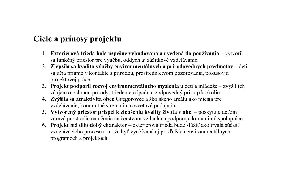 • Exteriérová trieda pre výučbu environmentálnej výchovy