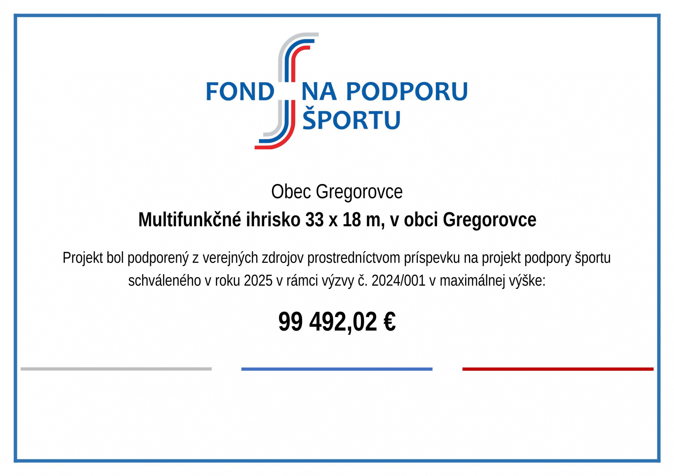 Multifunkčné ihrisko 33 x 18 m, v obci Gregorovce