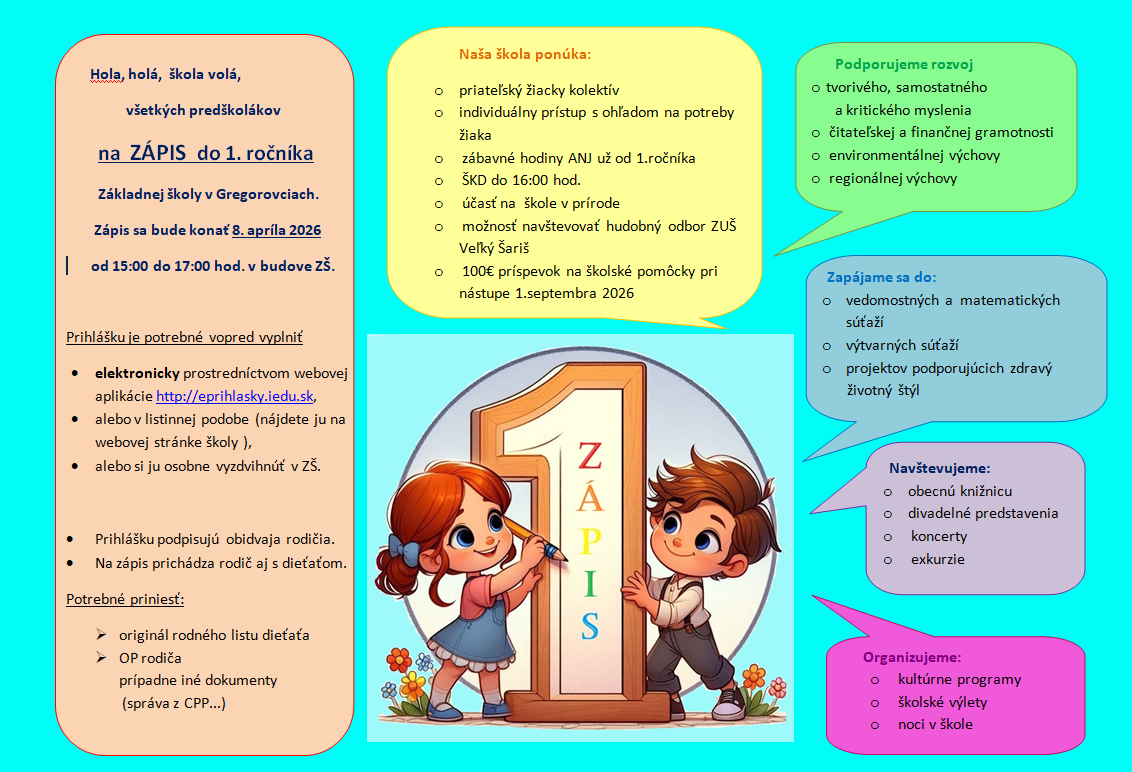 ZÁPIS DO 1. ROČNÍKA ZÁKLADNEJ ŠKOLY v GREGOROVCIACH